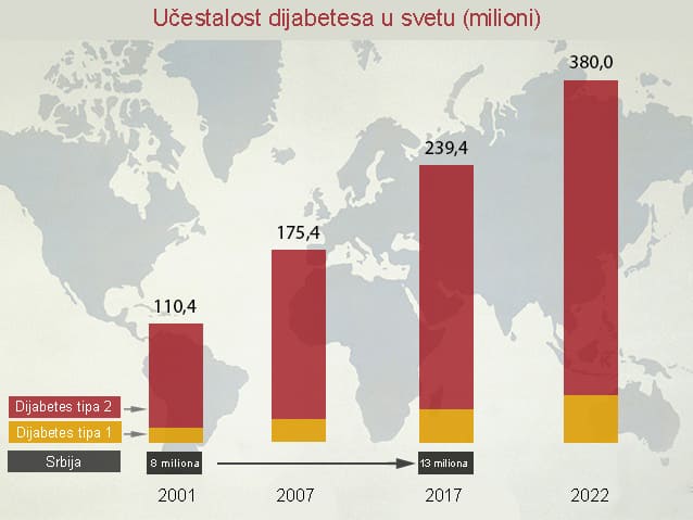Jakovljevic T.S.: Dijabetes melitus danas je najozbiljnija pretnja sa kojom se čovečanstvo suočava, što se objašnjava brzim rastom morbiditeta i visoke smrtnosti. Samo u poslednjih 20 godina postao je jedan od vodećih uzroka smrti među stanovništvom. S tim u vezi, bolest je među prioritetnim zadacima sa kojima se suočavaju lekari širom sveta.